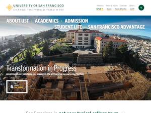 旧金山大学(University of San Francisco)成立于1855年,是一所非营利性私立高等教育机构,位于加利福尼亚州旧金山市(人口50 - 100万)的市区。由WASC高级学院和大学委员会正式认证的旧金山大学(USF)是一所大型的(排名范围:10,000-14,999名学生)男女同校的美国高等教育机构,正式隶属于基督教-天主教宗教。旧金山大学(USF)提供课程和项目,导致官方承认的高等教育学位,如在几个研究领域的学士学位,硕士学位,博士学位。详情请参阅下面的uniRank学位水平和学习领域矩阵。这所拥有164年历史的美国高等教育机构有一个基于入学考试和学生过去的学术记录和成绩的选择性录取政策。录取率范围是60-70%,这使得这所美国高等教育机构在某种程度上是选择性的机构。欢迎国际学生申请入学。旧金山大学还为学生提供一些学术和非学术设施和服务,包括图书馆、住房、体育设施、财政援助和/或奖学金、海外学习和交换项目、在线课程和远程学习机会,以及行政服务。
