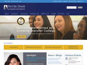 Notre Dame de Namur University成立于1851年,是一所非营利性的私立高等教育机构,位于加州贝尔蒙特(人口范围为10000 - 49999居民)的郊区。纳慕尔圣母院大学(NDNU)是由WASC高级学院和大学委员会(WASC Senior College and University Commission)正式认可的一所非常小的(uniRank注册范围:1000 - 1999名学生)男女同校的美国高等教育机构,正式隶属于基督教-天主教宗教。Notre Dame de Namur大学(NDNU)提供课程和项目,导致官方承认的高等教育学位,如在几个研究领域的学士学位,硕士学位,博士学位。详情请参阅下面的uniRank学位水平和学习领域矩阵。这所拥有169年历史的美国高等教育机构有一个基于入学考试和学生过去的学术记录和成绩的选择性录取政策。录取率范围是80-90%,这使得这所美国高等教育机构是一个最低选择的机构。欢迎国际学生申请入学。学校还为学生提供一些学术和非学术设施和服务,包括图书馆、住房、体育设施、助学金和/或奖学金、海外学习和交流项目、在线课程和远程学习机会,以及行政服务。