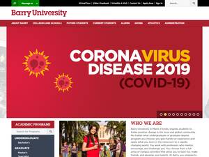 巴里大学(Barry University)成立于1940年,是一所非营利性私立高等教育机构,位于佛罗里达州迈阿密(Miami)大城的郊区(人口在10000 - 49999人)。该机构还在以下地点设有分校:奥兰多,坦帕,棕榈滩花园和整个佛罗里达州的地点。巴里大学(BU)是一所中等规模的美国高等教育机构(招生范围:8000 - 8999名学生),正式隶属于基督教和天主教。巴里大学(BU)提供的课程和项目导致官方承认的高等教育学位,如在几个研究领域的学士学位,硕士学位,博士学位。详情请参阅下面的uniRank学位水平和学习领域矩阵。这所拥有80年历史的美国高等教育机构有一个基于入学考试和学生过去的学术记录和成绩的选择性录取政策。录取率范围是90-100%,这使得这所美国高等教育机构成为最低选择的机构。欢迎国际学生申请入学。波士顿大学还为学生提供一些学术和非学术设施和服务,包括图书馆、住房、体育设施、财政援助和/或奖学金、海外学习和交换项目、在线课程和远程学习机会,以及行政服务。