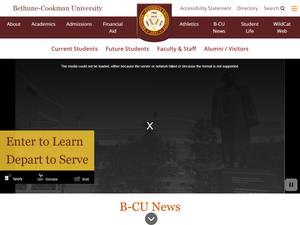 白求恩-库克曼大学(Bethune-Cookman University)成立于1904年,是一所非营利性私立文科高等教育机构,位于佛罗里达州小城市代托纳比奇(Daytona Beach,人口50,000- 249999人)的市区。白求恩-库克曼大学(B-CU)是一所小型的美国高等教育机构(招生范围:4000 - 4999名学生),正式隶属于基督教卫理公会宗教。白求恩-库克曼大学(B-CU)提供课程和项目,导致官方承认的高等教育学位,如几个研究领域的学士学位、硕士学位。详情请参阅下面的uniRank学位水平和学习领域矩阵。这所拥有116年历史的美国高等教育机构实行选择性录取政策。录取率范围是60-70%,这使得这所美国高等教育机构在某种程度上是选择性的机构。国际申请者有资格申请入学。B-CU还为学生提供一些学术和非学术设施和服务,包括图书馆、住房、体育设施、财政援助和/或奖学金、海外学习和交换项目、在线课程和远程学习机会,以及行政服务。