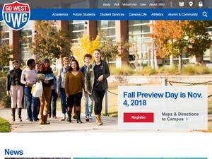 西乔治亚大学(University of West Georgia)成立于1906年,是一所非营利性公立州立高等教育机构,位于乔治亚州大城镇卡罗尔顿(Carrollton)的郊区(人口范围为10000 - 49999人)。西乔治亚大学(UWG)是一所大型的(排名范围:15000 - 19999名学生)男女同校的美国高等教育机构,由美国南部学院协会和学校委员会正式认证。西乔治亚大学(UWG)提供课程和项目,导致官方承认的高等教育学位,如在几个研究领域的学士学位,硕士学位,博士学位。详情请参阅下面的uniRank学位水平和学习领域矩阵。这所拥有114年历史的美国高等教育机构有一个基于入学考试和学生过去的学术记录和成绩的选择性录取政策。录取率在50-60%之间,这使得这所美国高等教育机构成为一所普通的选择机构。欢迎国际学生申请入学。大学还为学生提供一些学术和非学术设施和服务,包括图书馆、住房、体育设施、财政援助和/或奖学金、海外学习和交换项目、在线课程和远程学习机会,以及行政服务。