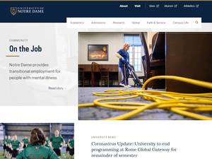 圣母大学(University of Notre Dame)成立于1844年,是一所非营利性私立高等教育机构,位于印第安纳州小城圣母(人口50,000-249,999居民)的郊区。圣母大学由高等教育委员会正式认证,是一所大型的(在伊朗排名范围内:10,000-14,999名学生)男女同校的美国高等教育机构,正式隶属于基督教和天主教。圣母大学(ND)提供的课程和项目,导致官方承认的高等教育学位,如学士学位,硕士学位,在几个研究领域的博士学位。详情请参阅下面的uniRank学位水平和学习领域矩阵。这所拥有176年历史的美国高等教育机构有一个基于入学考试和学生过去的学术记录和成绩的选择性录取政策。录取率范围是10-20%,这使美国高等教育机构成为最挑剔的机构。国际申请者有资格申请入学。ND还为学生提供一些学术和非学术设施和服务,包括图书馆、住房、体育设施、财政援助和/或奖学金、海外学习和交换项目、在线课程和远程学习机会,以及行政服务。