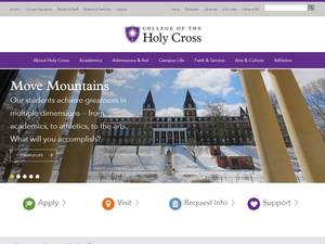 圣十字学院成立于1843年,是一所非营利性私立文科高等教育机构,位于马萨诸塞州伍斯特市(人口范围为50000-249999人)的城市环境中。由新英格兰高等教育委员会正式认证的圣十字学院(CHC)是一所小型(uniRank招生范围:2000-2999名学生)男女同校的美国高等教育机构,正式隶属于基督教天主教。圣十字学院(CHC)提供课程和项目,在多个研究领域获得官方认可的高等教育学位。有关更多详细信息,请参见下面的uniRank学位等级和学习领域矩阵。这所拥有177年历史的美国高等教育机构根据入学考试和学生过去的学习成绩和成绩实行选择性录取政策。入学率在30-40%之间,这使得这个美国高等教育机构成为一个非常有选择性的机构。国际申请人有资格申请入学。CHC还为学生提供一些学术和非学术设施和服务,包括图书馆、住房、体育设施、经济援助和/或奖学金、出国留学和交流计划以及行政服务。