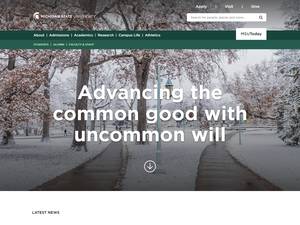密歇根州立大学成立于1855年,是一所非营利性公立高等教育机构,位于密歇根州东兰辛(人口范围为10000-49999人)大镇的城市环境中。密歇根州立大学(MSU)经高等教育委员会正式认证,是一所规模非常大(uniRank招生范围:超过45000名学生)男女同校的美国高等教育机构。密歇根州立大学(MSU)提供获得官方认可的高等教育学位的课程和计划,如若干研究领域的学士前学位(即证书、文凭、副学士或基础)、学士学位、硕士学位、博士学位。有关更多详细信息,请参见下面的uniRank学位等级和学习领域矩阵。这所拥有165年历史的美国高等教育机构根据入学考试和学生过去的学习成绩和成绩实行选择性录取政策。入学率在70-80%之间,这使得这家美国高等教育机构在某种程度上具有选择性。欢迎国际学生申请入学。密歇根州立大学还为学生提供一些学术和非学术设施和服务,包括图书馆、住房、体育设施、经济援助和/或奖学金、出国留学和交流计划、在线课程和远程学习机会,以及行政服务。