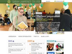 萨拉·劳伦斯学院成立于1926年,是一所非营利性私立文科高等教育机构,位于纽约市布朗克斯维尔(人口2500-9999人)的郊区。莎拉·劳伦斯学院(SLC)是一所规模非常小(uniRank招生范围:1000-1999名学生)的男女同校美国高等教育机构,由中部各州高等教育委员会正式认证。Sarah Lawrence College(SLC)提供课程和计划,以获得官方认可的高等教育学位,如若干研究领域的学士学位、硕士学位。有关更多详细信息,请参见下面的uniRank学位等级和学习领域矩阵。这所拥有94年历史的美国高等教育机构根据入学考试和学生过去的学习成绩和成绩实行选择性录取政策。入学率在50-60%之间,这使得这家美国高等教育机构成为一所中等水平的选择性机构。欢迎国际学生申请入学。SLC还为学生提供若干学术和非学术设施和服务,包括图书馆、住房、体育设施、经济援助和/或奖学金、出国留学和交流计划、在线课程和远程学习机会,以及行政服务。