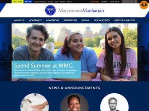 玛丽蒙特曼哈顿学院成立于1936年,是一所非营利性私立文科高等教育机构,位于纽约市大都市(人口超过500万)的城市环境中。Marymount曼哈顿学院(MMC)是一所规模较小(uniRank招生范围:2000-2999名学生)的男女同校美国高等教育机构,由中部各州高等教育委员会正式认证。Marymount曼哈顿学院(MMC)提供获得官方认可的高等教育学位的课程和项目,如若干研究领域的学士学位。有关更多详细信息,请参见下面的uniRank学位等级和学习领域矩阵。这所拥有84年历史的美国高等教育机构根据入学考试和学生过去的学习成绩和成绩实行选择性录取政策。入学率在70-80%之间,这使得这家美国高等教育机构在某种程度上具有选择性。欢迎国际学生申请入学。MMC还为学生提供一些学术和非学术设施和服务,包括图书馆、住房、经济援助和/或奖学金、留学和交流计划、在线课程和远程学习机会,以及行政服务。