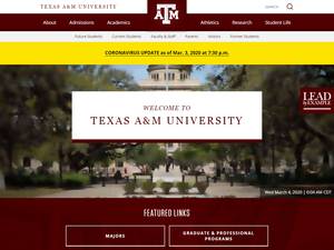 成立于1876年的德克萨斯州A&;M大学是一所非营利性公立高等教育机构,位于德克萨斯州大学城(人口范围为50000-249999人)的城市环境中。由德克萨斯州南部学院协会学院委员会正式认证;M大学(TAMU)是一所非常大的男女同校美国高等教育机构(uniRank招生范围:45000多名学生)。德克萨斯A&;M大学(TAMU)提供课程和项目,以获得官方认可的高等教育学位,如若干研究领域的学士学位、硕士学位、博士学位。有关更多详细信息,请参见下面的uniRank学位等级和学习领域矩阵。这所拥有144年历史的美国高等教育机构根据入学考试和学生过去的学习成绩和成绩实行选择性录取政策。入学率在60-70%之间,这使得这个美国高等教育机构在某种程度上具有选择性。国际申请人有资格申请入学。TAMU还为学生提供一些学术和非学术设施和服务,包括图书馆、住房、体育设施、经济援助和/或奖学金、出国留学和交流计划、在线课程和远程学习机会,以及行政服务。