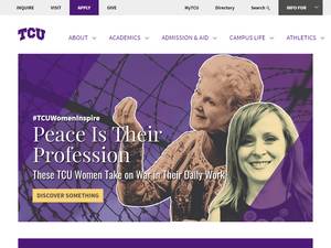 德克萨斯基督教大学成立于1873年,是一所非营利性私立高等教育机构,位于德克萨斯州沃思堡大城市(人口范围为500000-1000000)的城市环境中。德克萨斯州基督教大学(TCU)是一所规模较大(uniRank招生范围:10000-14999名学生)的男女同校美国高等教育机构,正式隶属于基督教改革宗,由南方学院协会学院委员会正式认证。德克萨斯基督教大学(TCU)提供获得官方认可的高等教育学位的课程和计划,如若干研究领域的学士前学位(即证书、文凭、副学士或基础)、学士学位、硕士学位、博士学位。有关更多详细信息,请参见下面的uniRank学位等级和学习领域矩阵。这所拥有147年历史的美国高等教育机构根据入学考试和学生过去的学习成绩和成绩实行选择性录取政策。入学率在40-50%之间,这使得这家美国高等教育机构成为一所普通的选择性院校。欢迎国际学生申请入学。TCU还为学生提供一些学术和非学术设施和服务,包括图书馆、住房、体育设施、经济援助和/或奖学金、留学和交流计划、在线课程和远程学习机会,以及行政服务。