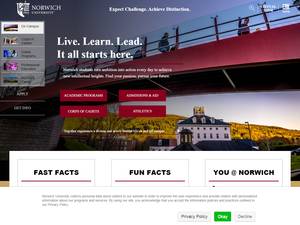 诺里奇大学成立于1819年,是一所非营利性私立高等教育机构,位于佛蒙特州中部城镇诺斯菲尔德(人口2500-9999人)的农村地区。诺里奇大学(NU)经新英格兰高等教育委员会(New England Commission of Higher Education)正式认证,是一所规模较小(uniRank招生范围:4000-4999名学生)男女同校的美国高等教育机构。诺里奇大学(NU)提供课程和项目,以获得官方认可的高等教育学位,如若干研究领域的学士学位、硕士学位。有关更多详细信息,请参见下面的uniRank学位等级和学习领域矩阵。这所拥有201年历史的美国高等教育机构根据入学考试和学生过去的学业成绩和成绩实行选择性录取政策。入学率在60-70%之间,这使得这个美国高等教育机构在某种程度上具有选择性。国际申请人有资格申请入学。NU还为学生提供一些学术和非学术设施和服务,包括图书馆、住房、体育设施、经济援助和/或奖学金、留学和交流计划、在线课程和远程学习机会,以及行政服务。