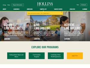 霍林斯大学成立于1842年,是一所非营利性私立文科高等教育机构,位于弗吉尼亚州小城市罗阿诺克(人口范围为50000-249999人)的郊区。霍林斯大学是一所规模非常小(uniRank招生范围:500-999名学生)的美国专为女性开设的高等教育机构,由南方学院协会和学校委员会(Southern Association of Colleges and Schools Commission on Colleges)正式认证。霍林斯大学提供课程和项目,以获得官方认可的高等教育学位,如若干研究领域的学士学位、硕士学位。有关更多详细信息,请参见下面的uniRank学位等级和学习领域矩阵。这所拥有178年历史的美国高等教育机构根据入学考试和学生过去的学习成绩和成绩实行选择性录取政策。入学率在60-70%之间,这使得这个美国高等教育机构在某种程度上具有选择性。欢迎国际学生申请入学。霍林斯大学还为学生提供若干学术和非学术设施和服务,包括图书馆、住房、体育设施、经济援助和/或奖学金、出国留学和交流计划、在线课程和远程学习机会,以及行政服务。