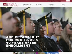奥尔巴尼药学与健康科学学院成立于1881年,是一所非营利性私立专业高等教育机构,位于纽约奥尔巴尼市(人口范围为50000-249999人)的城市环境中。奥尔巴尼药学与健康科学学院(ACPHS)是一所规模非常小(uniRank招生范围:1000-1999名学生)的男女同校美国高等教育机构,由中部各州高等教育委员会正式认证。奥尔巴尼药学与健康科学学院(ACPHS)提供获得官方认可的高等教育学位的课程和计划,如若干研究领域的学士前学位(即证书、文凭、副学士或基础)、学士学位、博士学位。有关更多详细信息,请参见下面的uniRank学位等级和学习领域矩阵。这所拥有139年历史的美国高等教育机构根据入学考试和学生过去的学习成绩和成绩实行选择性录取政策。入学率在70-80%之间,这使得这家美国高等教育机构在某种程度上具有选择性。国际申请人有资格申请入学。ACPHS还为学生提供若干学术和非学术设施和服务,包括图书馆、住房、体育设施、经济援助和/或奖学金、出国留学和交流计划、在线课程和远程学习机会,以及行政服务。