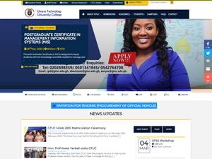 加纳技术大学学院成立于2006年,是一所私立高等教育机构,位于阿克拉北部大都市(人口范围为1000000-5000000),即大阿克拉。该学院还在以下地点设有分校:库马西、塔科拉迪、科福里杜阿、何塞。加纳技术大学学院(GTUC)是一所中等规模(uniRank招生范围:8000-8999名学生)男女同校的加纳高等教育机构,由加纳国家认证委员会(加纳国家认证委员会)正式认可。加纳技术大学学院(GTUC)提供获得官方认可的高等教育学位的课程和计划,如若干研究领域的学士前学位(即证书、文凭、副学士或基础)、学士学位、硕士学位、博士学位。有关更多详细信息,请参见下面的uniRank学位等级和学习领域矩阵。这所拥有14年历史的加纳高等教育机构根据学生过去的学习成绩和成绩实行选择性录取政策。入学率在80-90%之间,这使得该加纳高等教育机构成为选择性最低的机构。欢迎国际学生申请入学。GTUC还为学生提供一些学术和非学术设施和服务,包括图书馆、住房、体育设施、经济援助和/或奖学金、出国留学和交流计划以及行政服务。