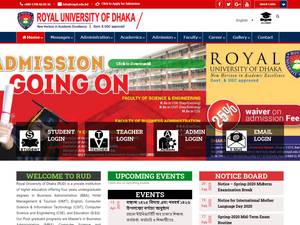 达卡皇家大学成立于2003,是一个非营利性的私立高等教育机构,位于达卡大都市的城市范围内(人口超过5000000的居民)。该学院还在以下地点设有分校:巴什加里、巴伊拉布、基沙尔冈。孟加拉皇家大学(RUD)正式承认,达卡皇家大学(RUD)是一个非常小的(UnRANK招生范围:500至99个学生)男女同校的孟加拉国高等教育机构。达卡皇家大学(RUD)提供课程和项目,以获得官方认可的高等教育学位,如学士学位,硕士学位在多个领域的研究。有关更多详细信息,请参见下面的uniRank学位等级和学习领域矩阵。这所拥有17年历史的孟加拉国高等教育机构根据入学考试和学生过去的学业成绩和成绩实行选择性录取政策。国际申请人有资格申请入学。RUD还为学生提供一些学术和非学术设施和服务,包括图书馆、住房、体育设施、经济援助和/或奖学金、出国留学和交流计划、在线课程和远程学习机会,以及行政服务。