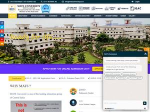 马茨大学成立于2006年,是一所私立高等教育机构,位于恰蒂斯加尔大城市阿朗(人口50万至100万)的农村地区。马茨大学是印度大学教育资助委员会正式认可的一所大型(uniRank招生范围:10000-14999名学生)男女同校的印度高等教育机构。MATS大学提供课程和项目,在多个研究领域获得官方认可的高等教育学位。有关更多详细信息,请参见下面的uniRank学位等级和学习领域矩阵。马茨大学还为学生提供一些学术和非学术设施和服务,包括图书馆以及行政服务。