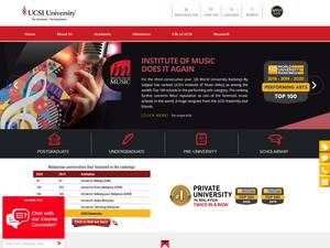 加州大学国际学院成立于1986年,是一所盈利性私立高等教育机构,位于吉隆坡大都市(人口范围为1000000-5000000)。该学院还在以下地点设有分校:古晋、马朗。UCSI大学(UCSI)是马来西亚高等教育部(马来西亚高等教育部)正式认可的一所小型(uniRank招生范围:2000-2999名学生)男女同校的马来西亚高等教育机构。UCSI大学(UCSI)提供获得官方认可的高等教育学位的课程和计划,如若干研究领域的学士前学位(即证书、文凭、副学士或基础)、学士学位、硕士学位、博士学位。有关更多详细信息,请参见下面的uniRank学位等级和学习领域矩阵。这所拥有34年历史的马来西亚高等教育机构根据入学考试和学生过去的学业成绩和成绩实行选择性录取政策。欢迎国际学生申请入学。UCSI还为学生提供一些学术和非学术设施和服务,包括图书馆、体育设施、经济援助和/或奖学金、出国留学和交流计划、在线课程和远程学习机会,以及行政服务。