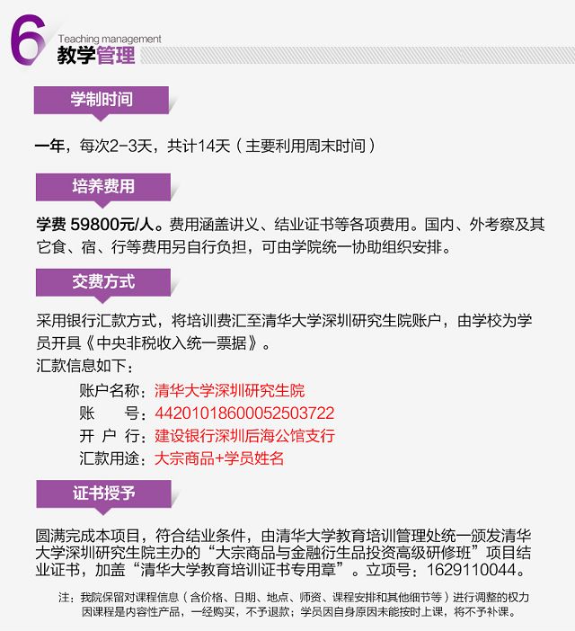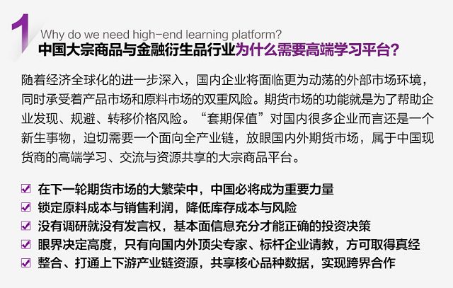 清华大学深圳研究生院《中国大宗商品与金融衍生品投资高级研修班》是中国大宗商品高端培训领域的创新之作,致力于为中国大宗商品现货商与大资金投资者搭建一个宏观经济、套期保值、实战期货、基金管理的高端平台,实现产业与资本共赢!为中国大宗商品与金融衍生品投资领域培养领军人才。