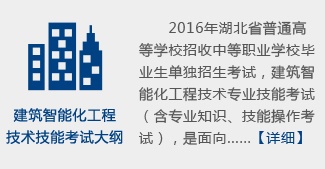 2016年湖北省普通高等学校招收中等职业学校毕业生单独招生考试,建筑智能化工程技术专业技能考试(含专业知识、技能操作考试),是面向中等职业学校(包括中等专业学校、职业高中、技工学校和成人中专)相关专业毕业生的选拔性考试,建筑智能化工程技术专业技能考试,应当具有一定的信度、效度和必要的区分度。
