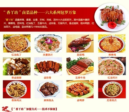 四川香丫坊刘师傅本着将四川卤菜的制作配方发扬,将自己毕生所学卤菜技术传授给广大的餐饮创业者,“香丫坊”传授所有正宗四川卤菜系列的技术,包含有夫妻肺片、棒棒鸡、红油兔丁、五香牛肉、卤排骨、无骨凤爪、香卤猪脚、绝味鸭脖、红油耳片、卤鸡翅、甜皮鸭、藤椒鸡、百味鸡等几十多种卤菜主流品种。