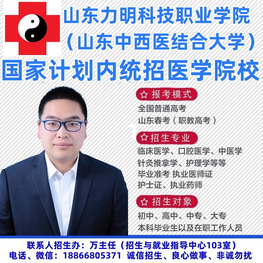 山东力明学院所开设的临床医学、口腔医学、中医学、针灸推拿四个专业均可准考执业医师,护理专业,普通专科(计划内统招)毕业。
