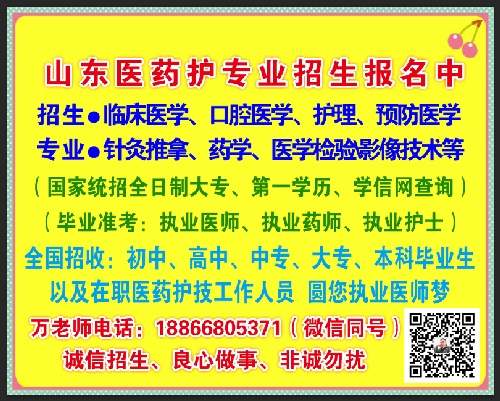 友情提示:名额在减少、机会在缩小、报名一直在继续、你不动、别人在动手、招生专业: 临床医学、 口腔医学、 护理、中医学、针灸推拿、中药学、药学等(国家计划内统招毕业证书全日制大专文凭、学信网可查询、准考医师)。