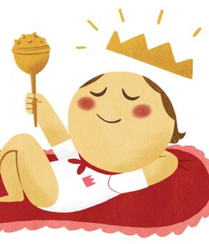 爸爸妈妈爷爷奶奶都得听我的,都得帮我做事情。奶奶喂我吃饭,妈妈早上帮我穿衣服,爷爷帮我收拾玩具,嘿,谁来帮我系下鞋带?