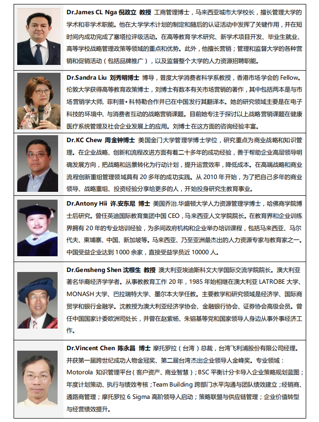 马来西亚城市大学工商管理硕士(运营与供应链方向)MBA学位远程班,是为迎接全球商业变革而设立,以培养具有国际视野的企业家或职业经理人为主要目的,旨在汇聚系统与实战密切结合的国内外顶级专家、教授,聚焦制约企业发展的典型瓶颈问题,特别是企业的供应链管理问题,通过引入系统的国际化MBA课程、供应链战略管理课程和商业案例,为商界精英提供超越常规视野、突破传统理念、抢占并保持领先地位的国际化高端平台。