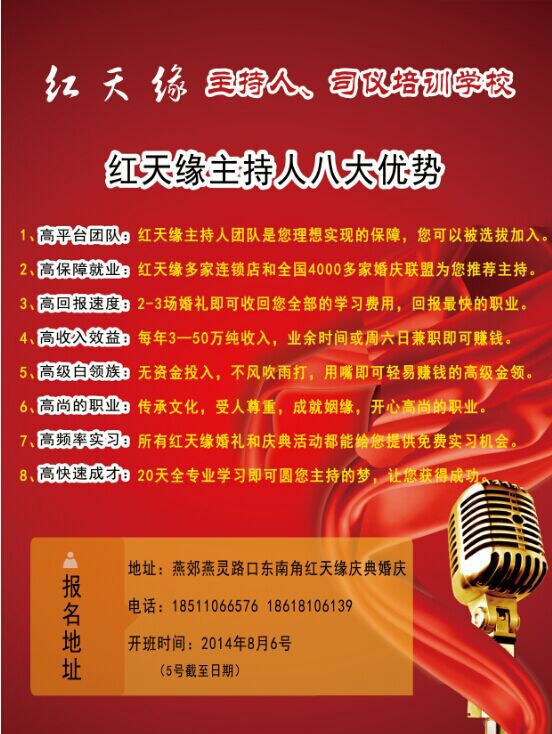 1.热爱舞台,想全职的、或兼职从事婚礼主持的朋友;