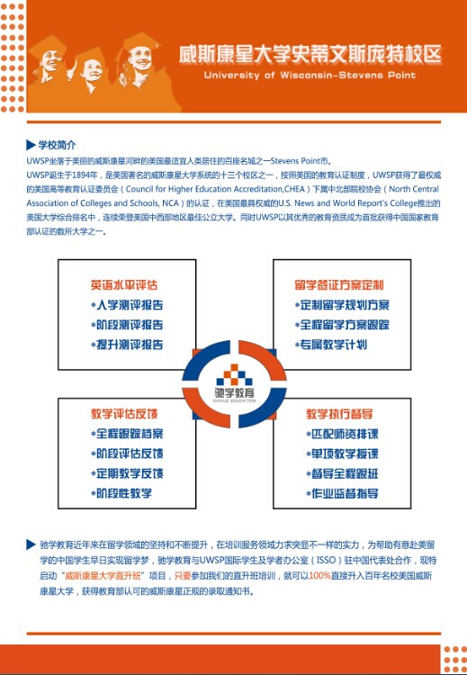 UWSP是一所国际化的大学,有着卓越安全的国际留学生政策。在中国设有中国代表处为学生及家长提供全面学校信息,还会与部分友好机构合作,为学生出国前做好英语培训工作