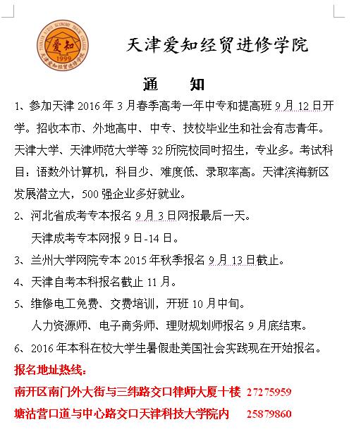 • 发布机构:天津爱知经贸进修学院
