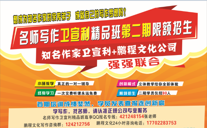 知名作家卫宣利专属培训,亲传弟子提高迅速