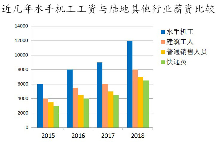 在船月收入一般在8000元/月—12000元/月,无上限。满18个月资历可以晋升高级船员。