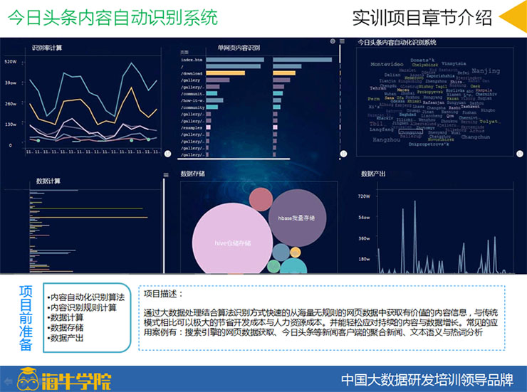 海牛学院隶属于北京阳光海牛科技有限公司,是国内首家以资深开发工程师创办的大数据培训基地。公司旗下有海牛学院、大数据产业、项目研发、创业孵化等业务,公司总部位于北京。