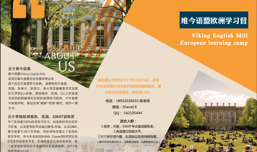 关于寒假欧洲雅思,托福,GMAT训练营。