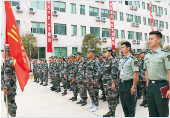 学校是全封闭式军事化管理,有专门的门卫处、保卫处、监控室、食堂、宿管部门等等。每个班配备专门的班主任老师,全天排满课程含早自习和晚自习,与普通高中学生管理制度无异。