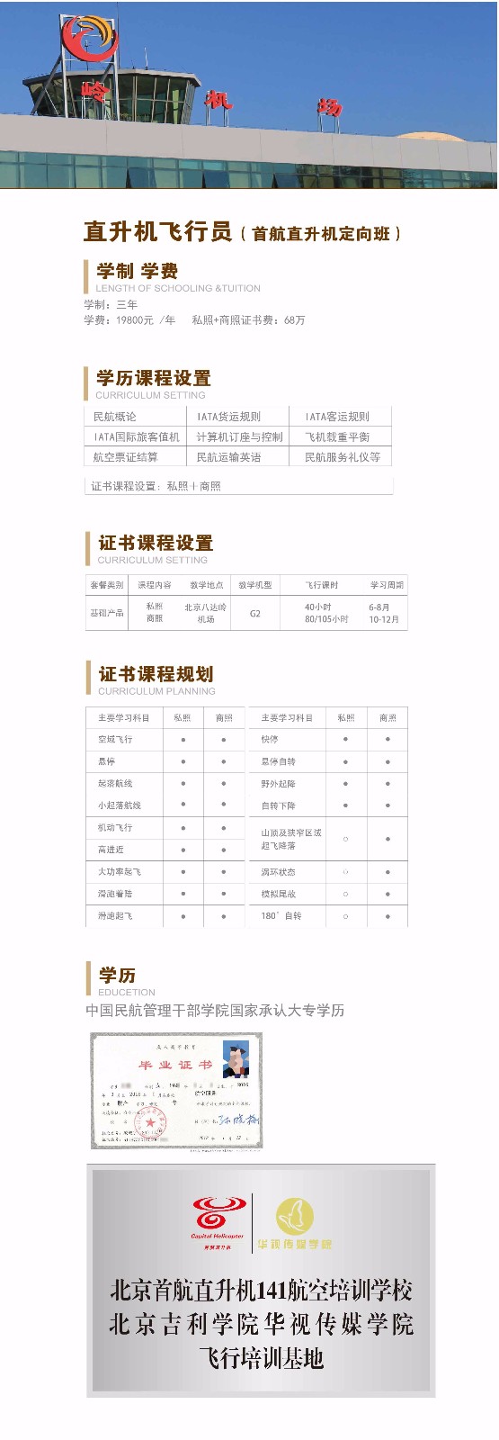 北京首航直升机141航空培训学校 北京吉利学院华视传媒学院