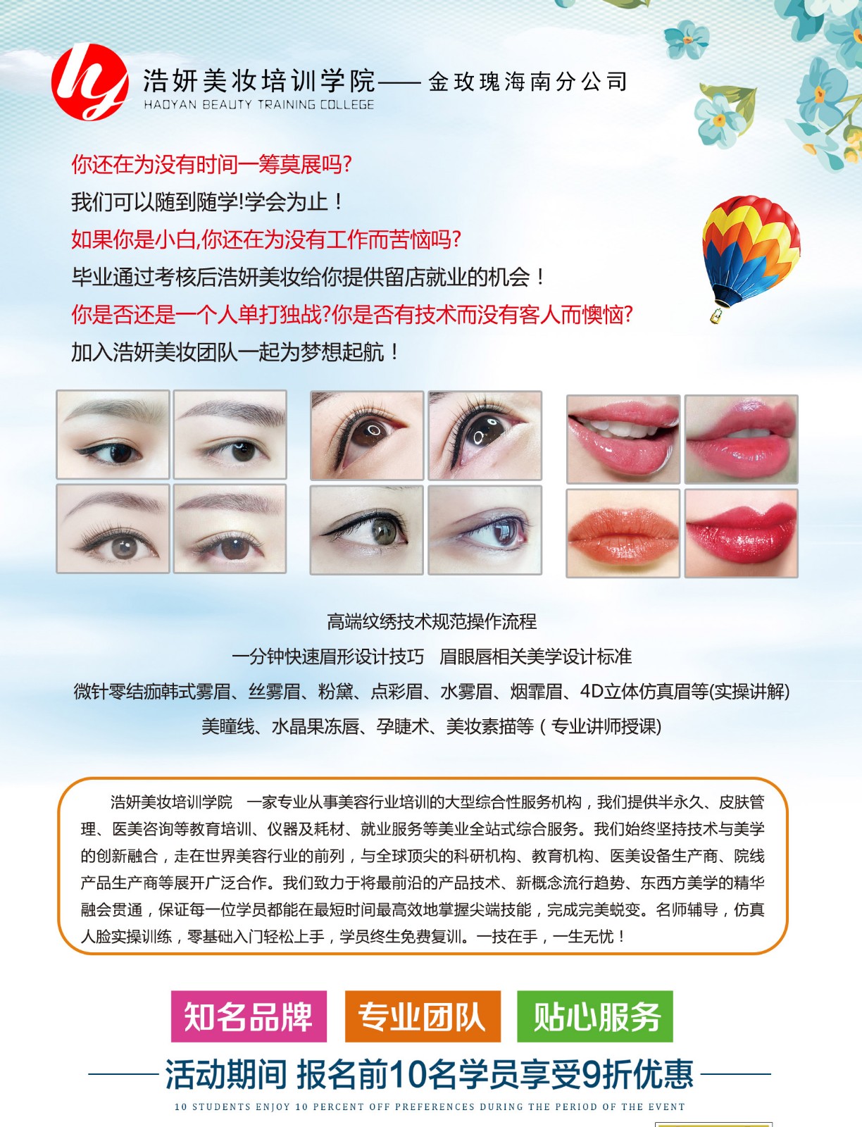 海口龙华浩妍美妆培训学院纹绣美甲免费招生