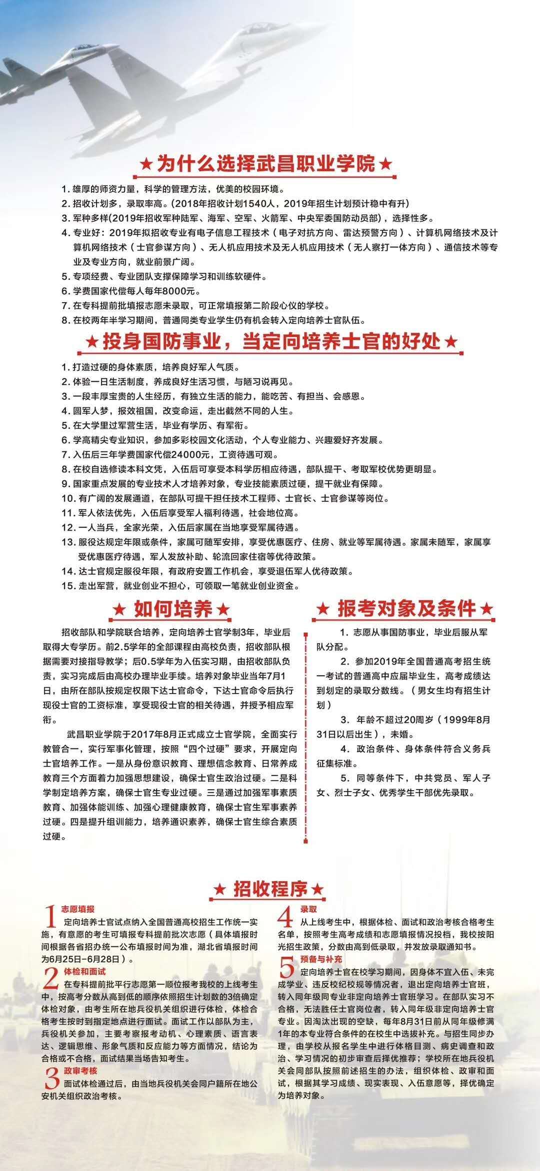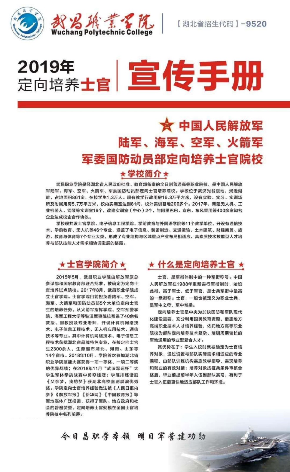 写在前面:定向培养士官,项目适合高考(2019)成绩预计不理想,考不上大学者,准备服兵役之学生。