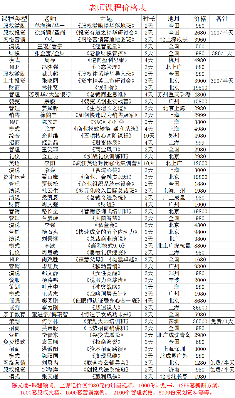 课程时间:每月各地一次