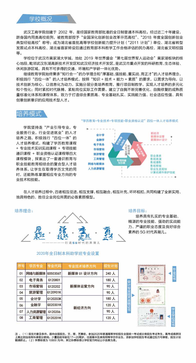 武汉工商学院全日制本科助学班2022年招生简章