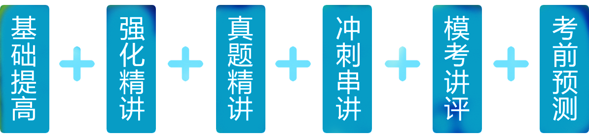基础(夯实基础,查漏补缺)+强化(循序渐进,稳步提升)+精讲(传授技巧)+串讲(画龙点睛)+预测(获取高分,华丽升本)