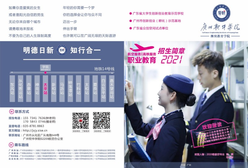 2021广州软件学院继续教育学院航空(高铁)服务职业教育招生