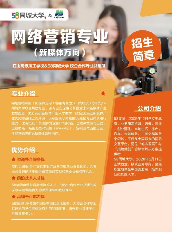 58同城与江山高级技工学校专业共建网络营销(新媒体方向)诚聘代理