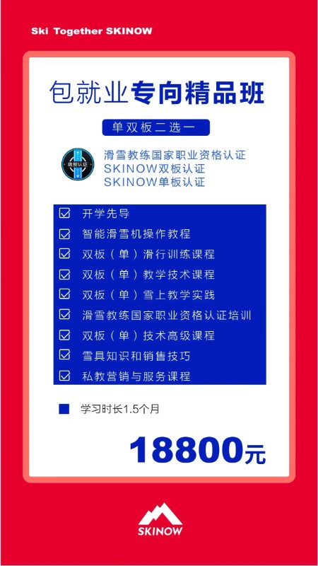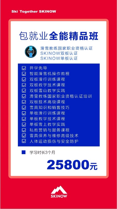 a)理论+实践,单板或双板二选一包就业专向精品班/包就业全能精品班