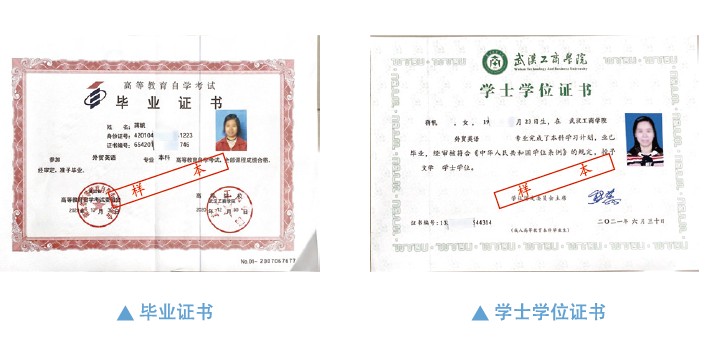 学生参加全国统一组织的高等教育自学考试,且各科考试成绩合格者,经审定,颁发由湖北省高等教育自学考试委员会验印、武汉工商学院副署的本科文凭,国家承认学历,可在中国高等教育学生信息网(学信网http://www.chsi.com.cn)查询。符合学士学位授予条件者,授予武汉工商学院学士学位。