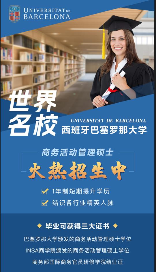 西班牙排名第一巴塞罗那大学毕业获得3证,免出国
