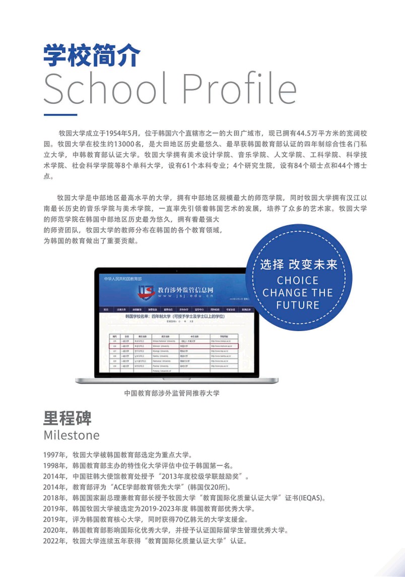 2019年,韩国牧园大学被选定为:“2019-2023年度”韩国教育部优秀大学