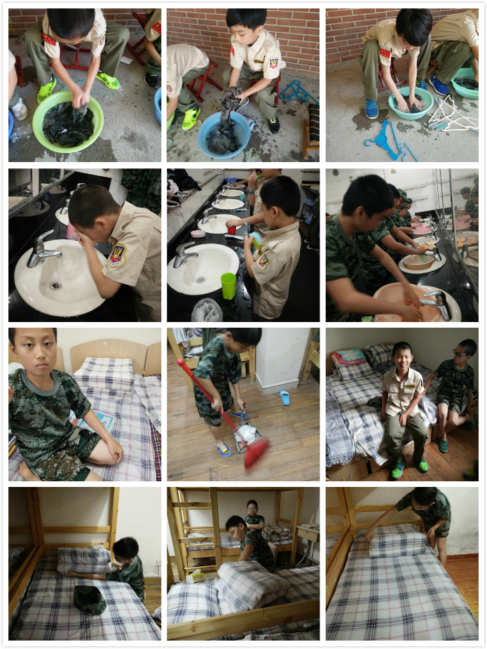 每个房间都有独立卫生间,空调热水器。队员们可以洗衣服、洗澡;每个房间配备一名助教老师,负责营员安全及良好生活习惯的培养;房间卫生由助教老师统一安排队员们清理,楼道卫生由每个寝室共同分担,并定时检查宿舍卫生进行评比。