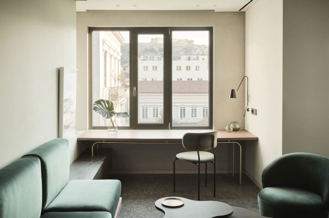 酒店内共有 38 间客房,面积为 21㎡~ 46㎡,均设有私人露台,可以欣赏到雅典的城市景观。