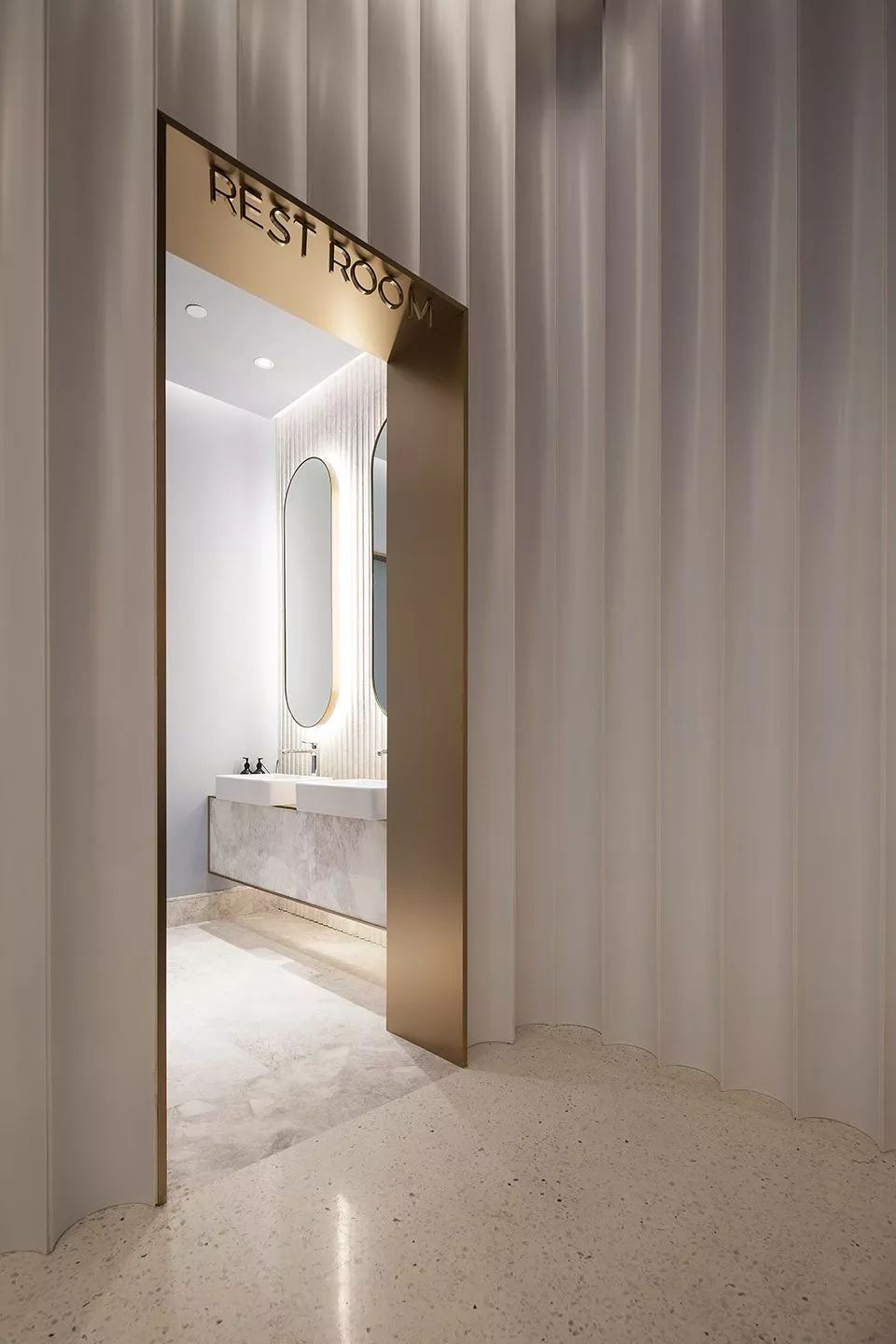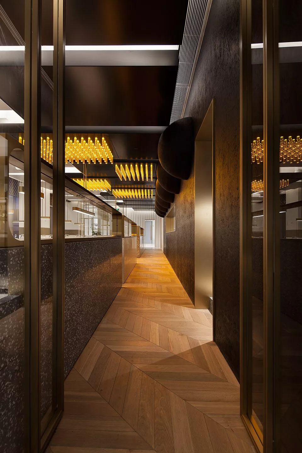 从门框到灯具的金色黄铜装饰,衬托出暖融慵懒与奢华的气氛