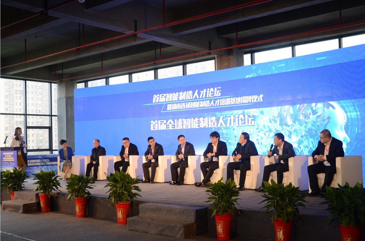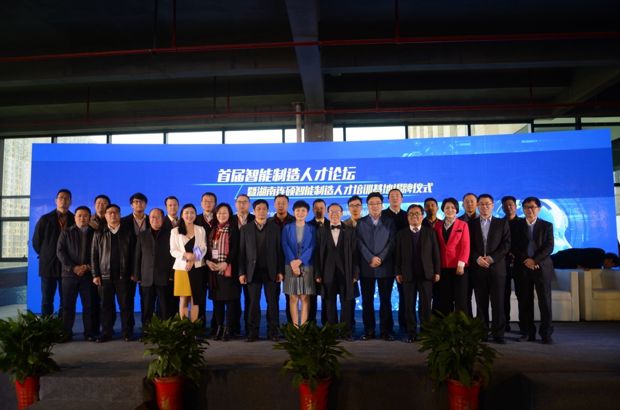 3月10日上午,由湖南省机器人产业集聚区、湖南广播电视大学、长沙雨花经济开发区管理委员会、深圳市连硕教育投资管理有限公司等单位联合举办的首届全球智能制造人才论坛暨湖南连硕智能制造人才培训基地揭牌仪式在湖南省机器人产业集聚区隆重举行,广东省人民政府参事、深圳工业总会执行主席王肇文、长沙市人民政府副市长邱继兴、湖南省人社厅、教育厅、湖南省广播电视大学(湖南网络工程职业学院)、湖南科技职业学院、湖南省信息职业技术学院、长沙市经信委、长沙市科技局、雨花区、雨花经开区等领导同志参加了揭牌仪式。ABB、FANUC(发那科)、KUKA(库卡)、YASKAWA(安川)、那智不二越、UR(优傲)、Comau(柯马)、MITSUBISHI(三菱)、EPSON(爱普生)、Staubli(史陶比尔)、ADEPT(爱德普)、埃夫特、众为兴、李群等国内外知名机器人本体厂商负责人代表悉数到场,企业高层、行业专家、高校负责人等齐聚长沙,交流论道,指点智能制造产业前景,探讨专业人才队伍建设之道。
